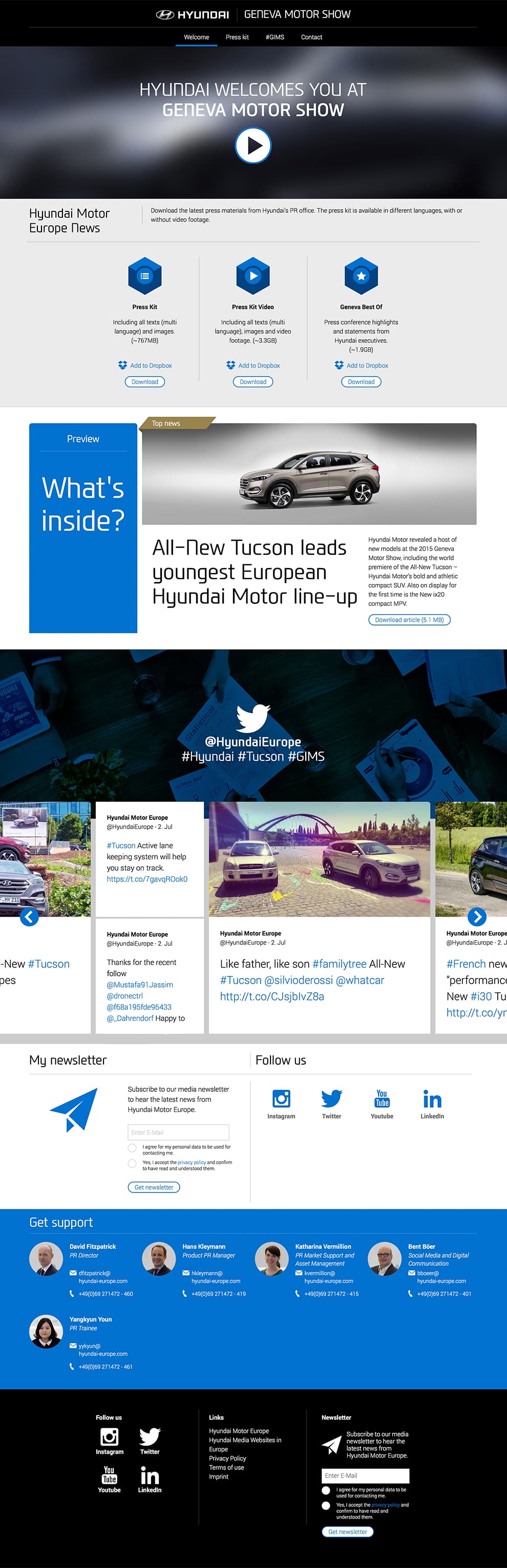 In cooperation with the shift.agency I established a onepager newsroom for Hyundai Europe which was used to communicate the significant press-materials to the journalists at the Geneva Motor Show in 2015. Prospective, this project can be utilized as a conceptual basis for yet another newsroom. The project and its fundamental look was developed in cooperation with the Art Director Johannes Kempe. You can find the current newsroom here: www.hyundai.news